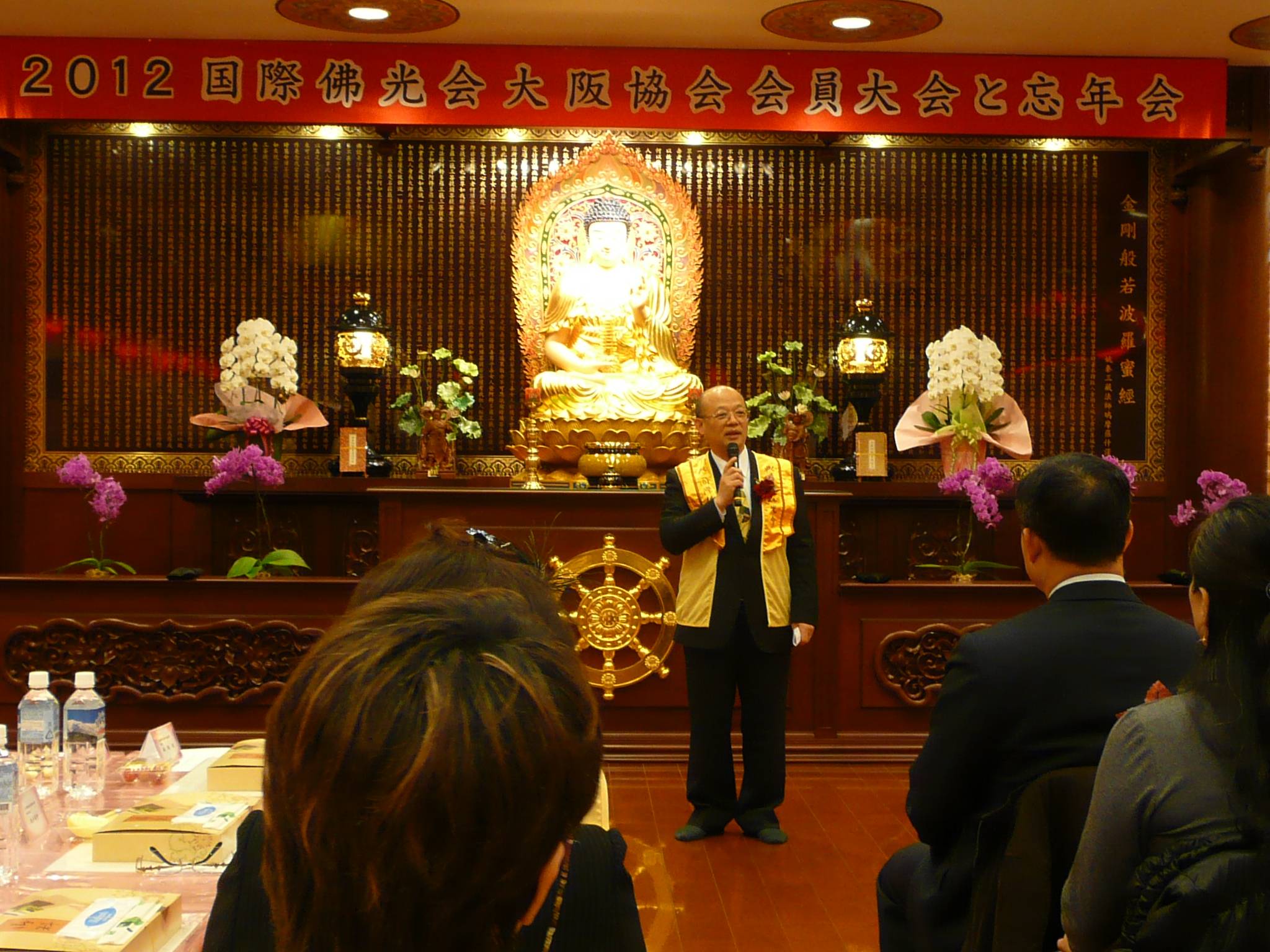 大阪辦事處僑務組長陳敏永、係長蔡元良、大阪中華總會婦女會會長俞秀霞、關西台商會會長謝美香、欣華會會長李忠儒等多位僑領應邀出席。陳組長感謝大阪佛光山法師與佛光會師兄姐在國人旅日危難時給予協助,助家屬化悲傷轉平靜,更讓在日僑胞心靈上獲得撫慰,他代表大阪辦事處致最高的敬意。國際佛光會大阪協會會長林裕恒分享『把握當下』的心得,以及國際佛光會主題─淡泊知足、慈悲包容、提放自如、無私無我,即是幸福與安樂。