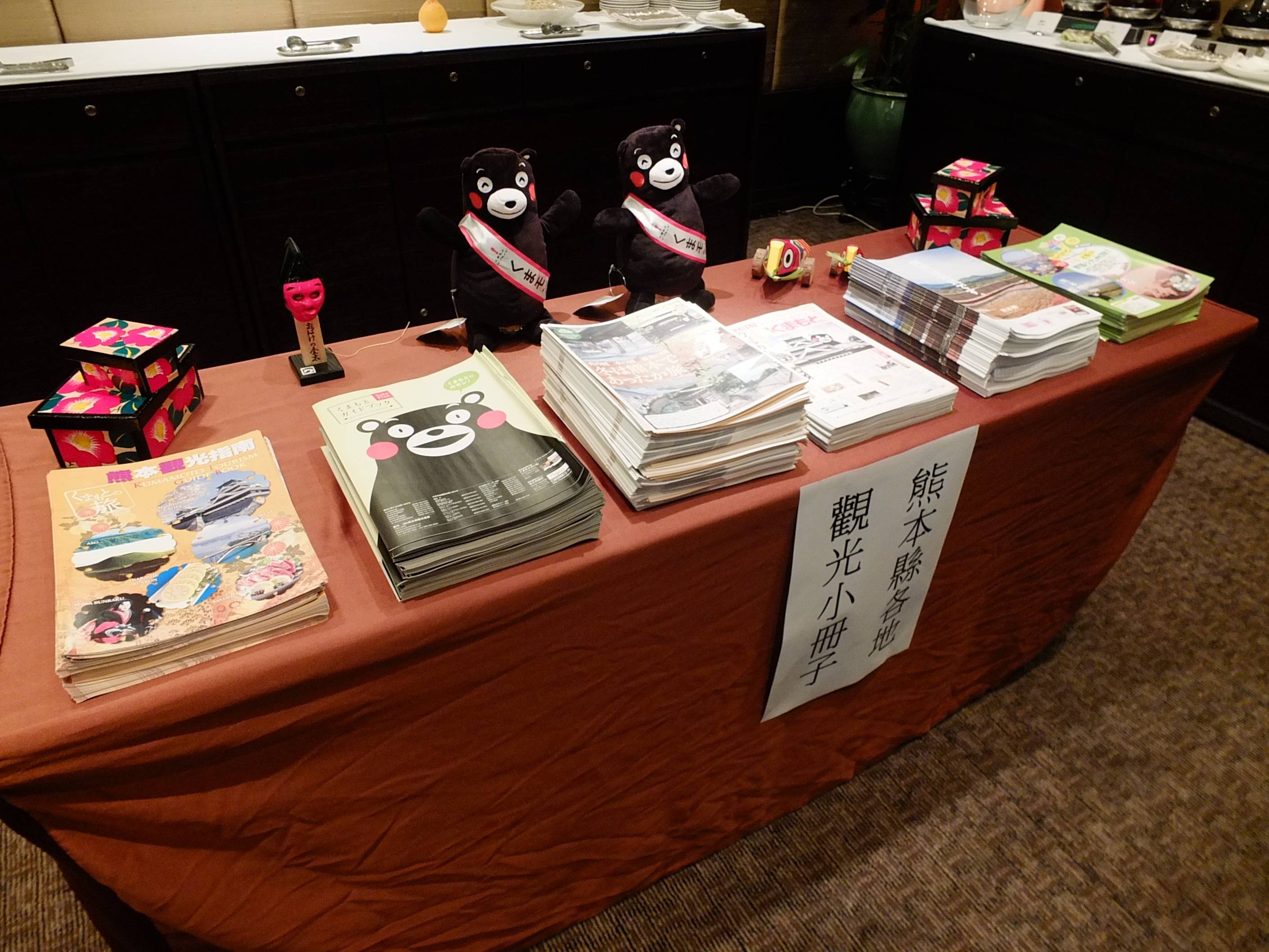 説明会の中盤からは「ゆるキャラグランプリ2011」王者にも輝いたくまモンが登場し、会場からは大きな歓声が沸き起こった。熊本県からの出席者も巻き込んで「くまモン体操」を披露したほか、写真撮影では多彩なポージングで旅行会社関係者を魅了した。台湾の旅行会社の担当者は「くまモンは台湾でも知っている人がいる。観光プロモーションでゆるキャラを起用するのはとても面白い」と斬新な訪台プロモーションを歓迎した。