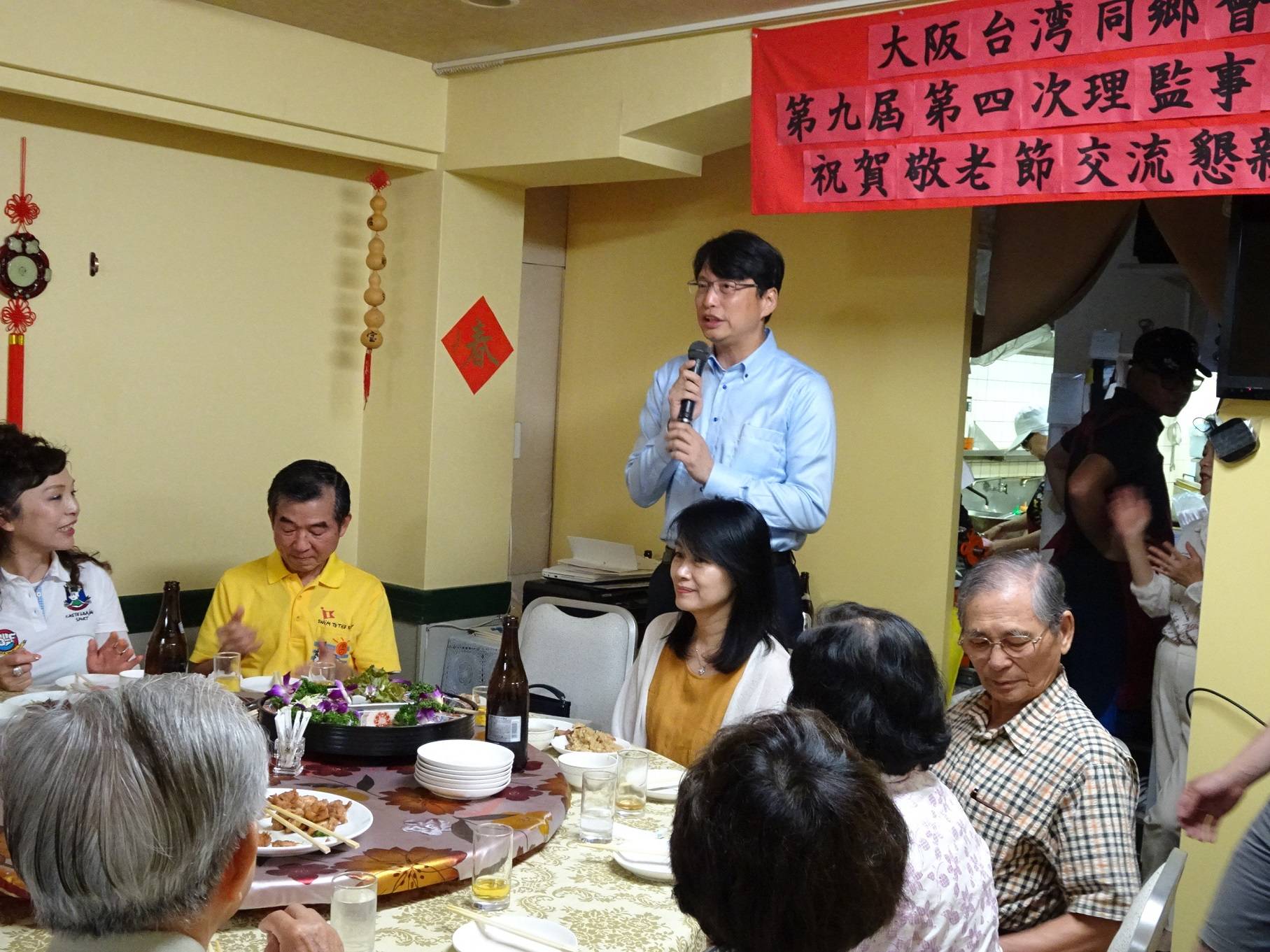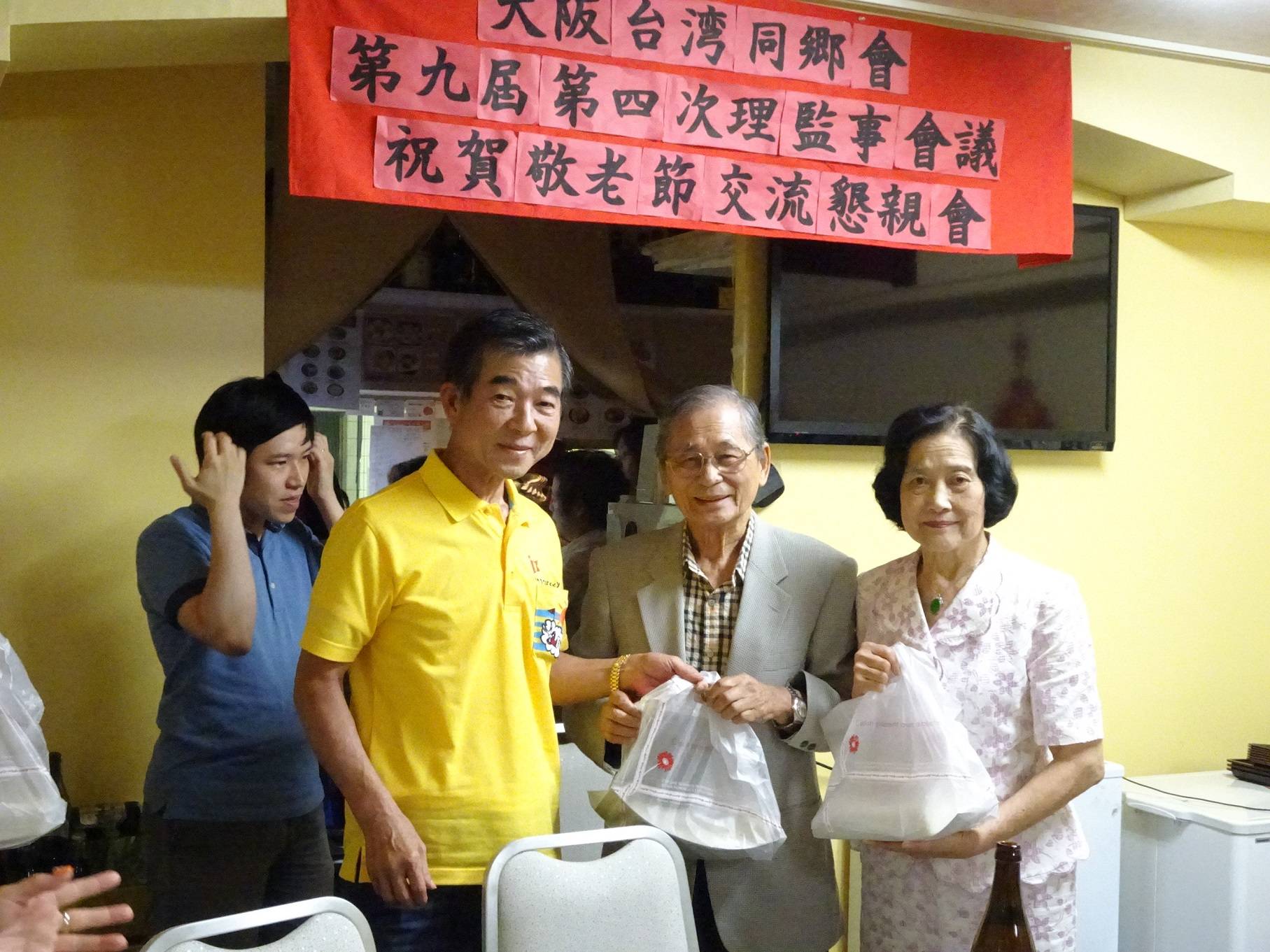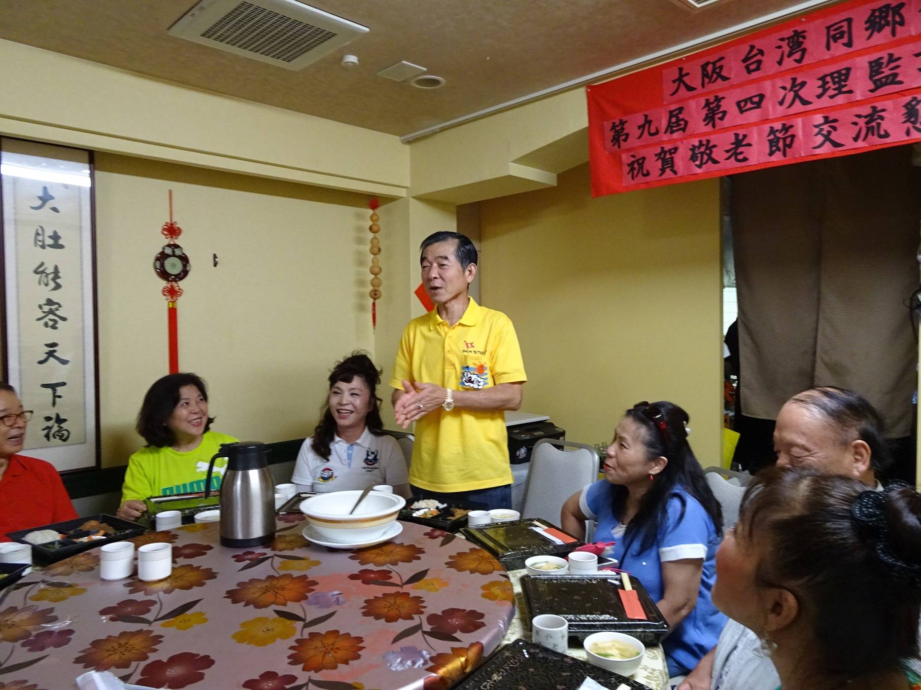 9月19日日本敬老節,一早大阪台灣同鄉會20多名成員聚集在大阪市西中島地區淀川公園參加河川清掃工作,午後召開第9屆第4次理監事會議,當晚舉辦敬老懇親會並為即將榮調東京擔任駐日代表處副代表的駐大阪辦事處處長張仁久餞別。