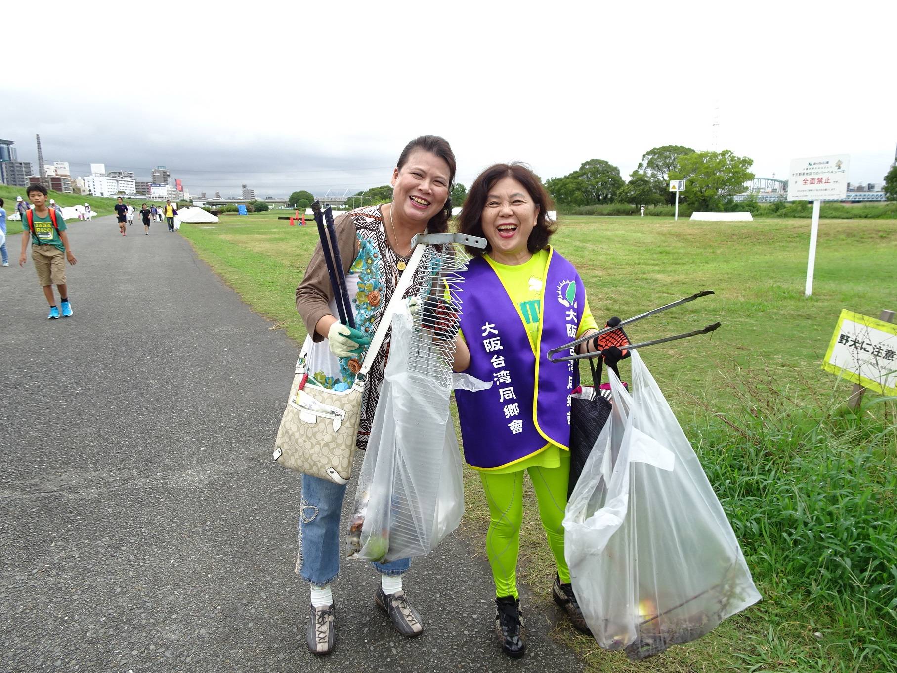 會員分組沿著河堤前進,撿散落在草叢岸邊的寶特瓶、菸蒂、廢棄物,太陽雖然沒有露臉,結束後不少人滿頭大汗,異口同聲認為河川清掃環保又健身。隨行的河川環境管理財團主任研究員西野俊二表示,今天垃圾雖然不多,大阪台灣同鄉會表現的非常賣力、認真,十分感謝。結束後,移師台灣小吃168,享用會長王坤保所準備的便當,氣氛非常融洽。不少會員表示,河川清掃活動服務社會還可以順便運動,利己利他,希望以後還有機會參加。