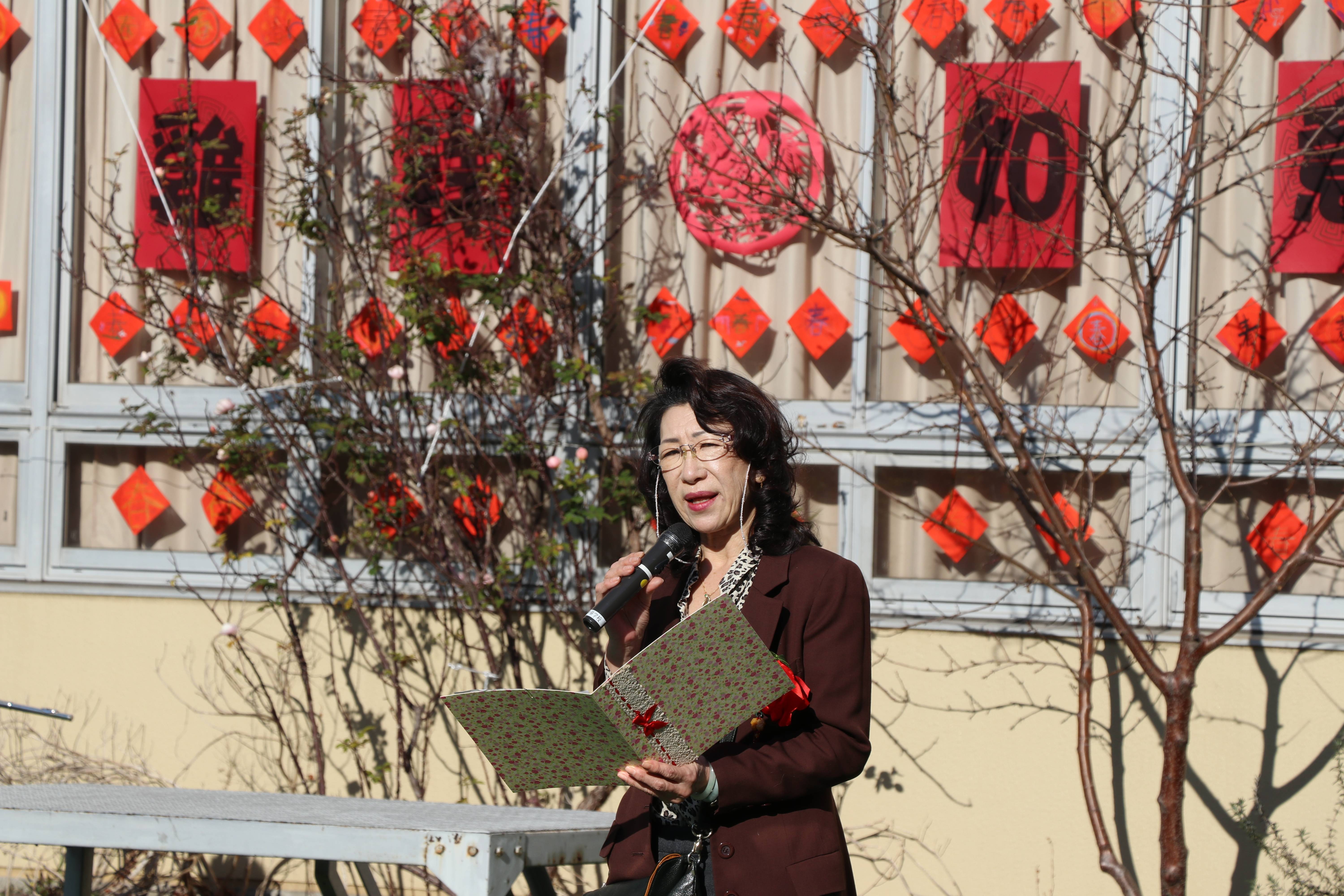 東京中華學校校友會會長陳櫻芳歡迎大家參加春節祭