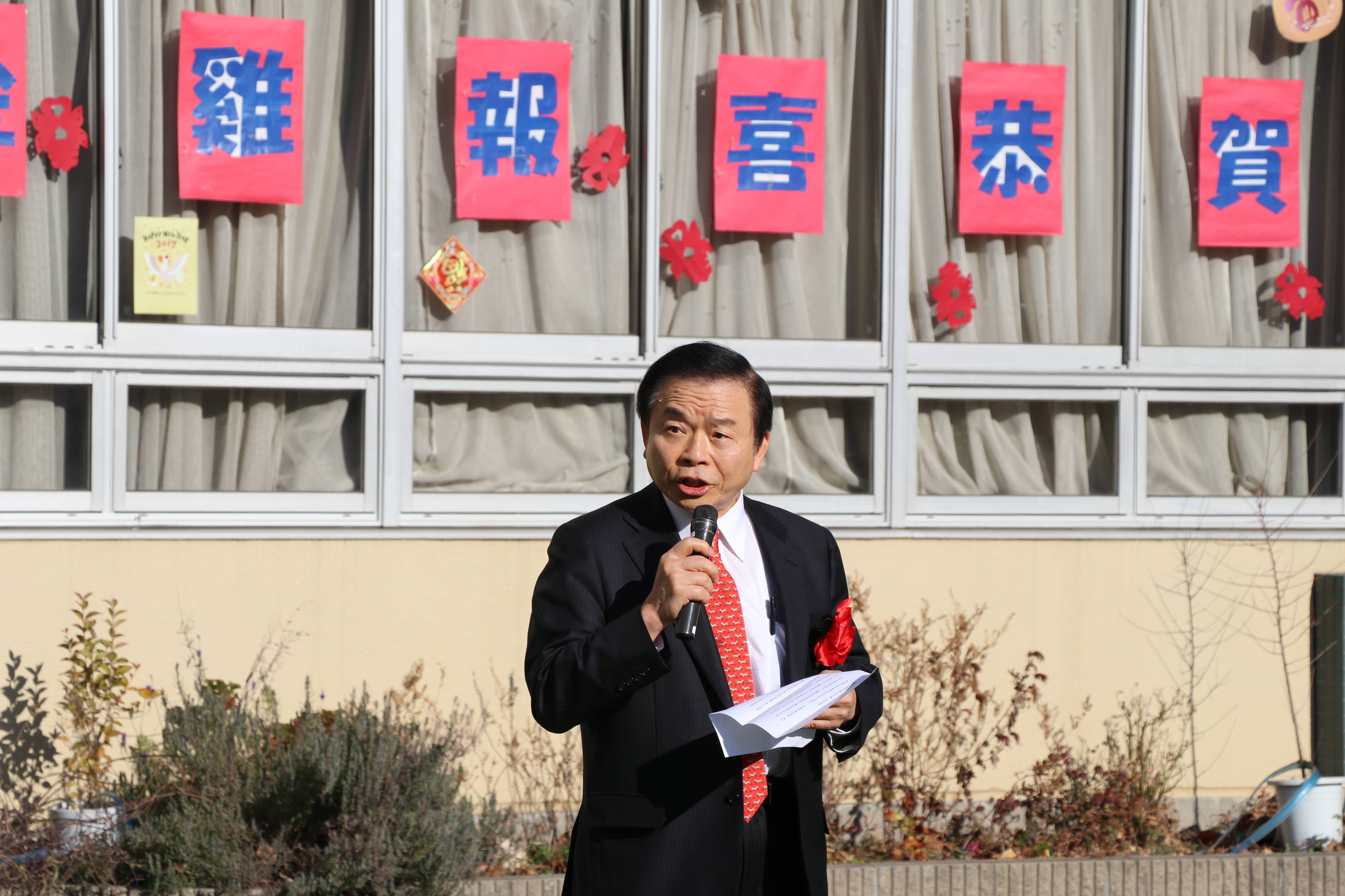 副代表郭仲熙則感謝校友會和僑界人士熱心相助,讓身在海外的僑胞和青年學子們能夠感受到春節的溫馨。東京華僑總會會長蘇成宗則感謝東京中華學校劉劍城校長和全體老師的努力,創造完善的教學環境讓學生安心求學。他也感謝校友會成為學校的後盾,讓學校可以無後顧之憂的全力辦學。