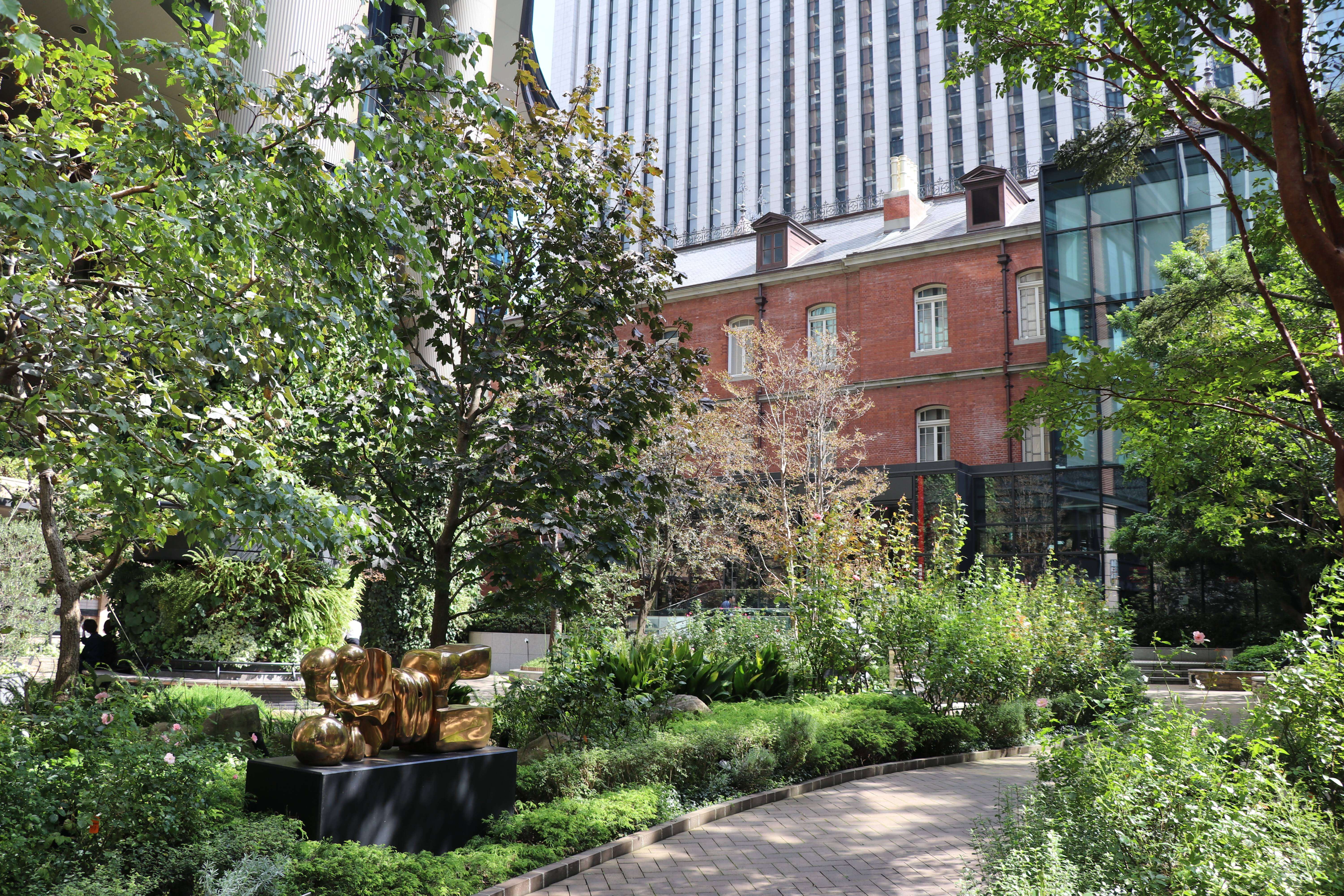 2010年開幕的三菱一號美術館是另一個丸之內不可錯過的景點。三菱一號館在1894年落成,原為三菱銀行,是一棟由英國建築師設計的紅磚瓦式建築。館外有著綠意盎然的草坪和噴水池等,遊客悠閒的在長椅上休息聊天,很難相信自己置身在東京的精華商業區中。