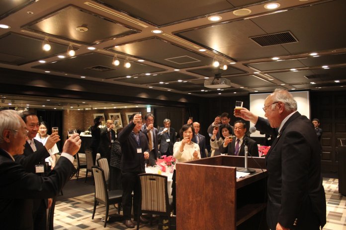 日台経済文化交流協会(上村直子会長)は12月4日、ホテルモントレ横浜で会の1年を締めくくる忘年会を行った。同会には来賓として、台北駐日経済文化代表処横浜分処の陳桎宏処長夫妻子息、横浜市議会の田野井一雄議員、衆議院議員で内閣官房長官の菅義偉議員代理の小池文彦秘書、横浜台湾同郷会の鄭尊仁会長、中華民国僑務委員の河道台委員ら各界代表の他、日本及び台湾の学生らも参加し、交流を深めた。