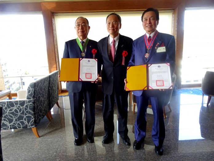 参議院議員、PHP総合研究所社長等を歴任し、現在は株式会社江口オフィスの代表取締役を務める江口克彦氏と、輝生医院院長で日本李登輝友の会理事を務める大田一博(王輝生)氏が2月18日、長年の日台交流に貢献したことを評価され、台湾僑務委員会からそれぞれ「外交之友奨章」、「二等華光専業奨章」を授与された。