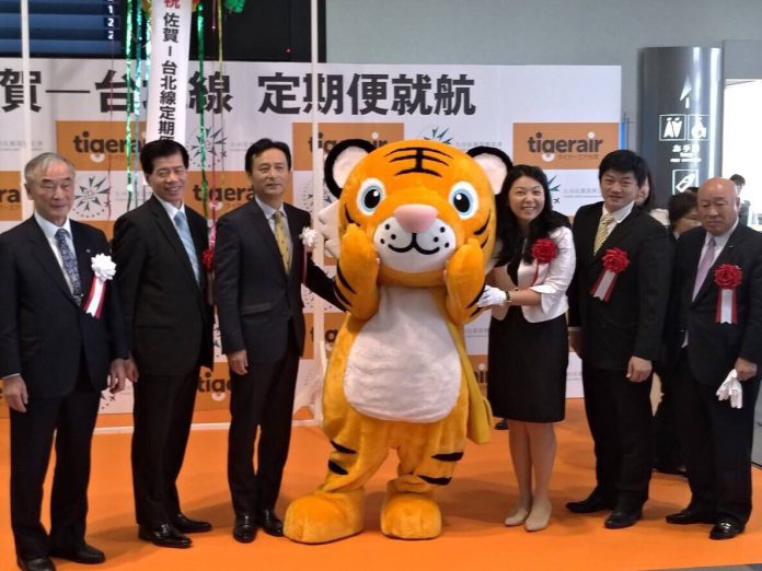 佐賀県山口祥義知事は10月28日、佐賀-台北線の定期便就航に伴い、就航記念セレモニーを九州佐賀国際空港2階出発ロビーで開催した。山口知事、タイガーエア台湾黃世惠商務長、五福旅行社副協理、国会議員、県議会議員、台北駐福岡経済文化弁事陳忠正処長、佐賀市秀島敏行市長などが出席し、テープカットやくす玉割りなども披露された。また、搭乗者(到着)への記念品配布や航空機の出発時に放水ショーも行われ、定期便就航に華を添えた。