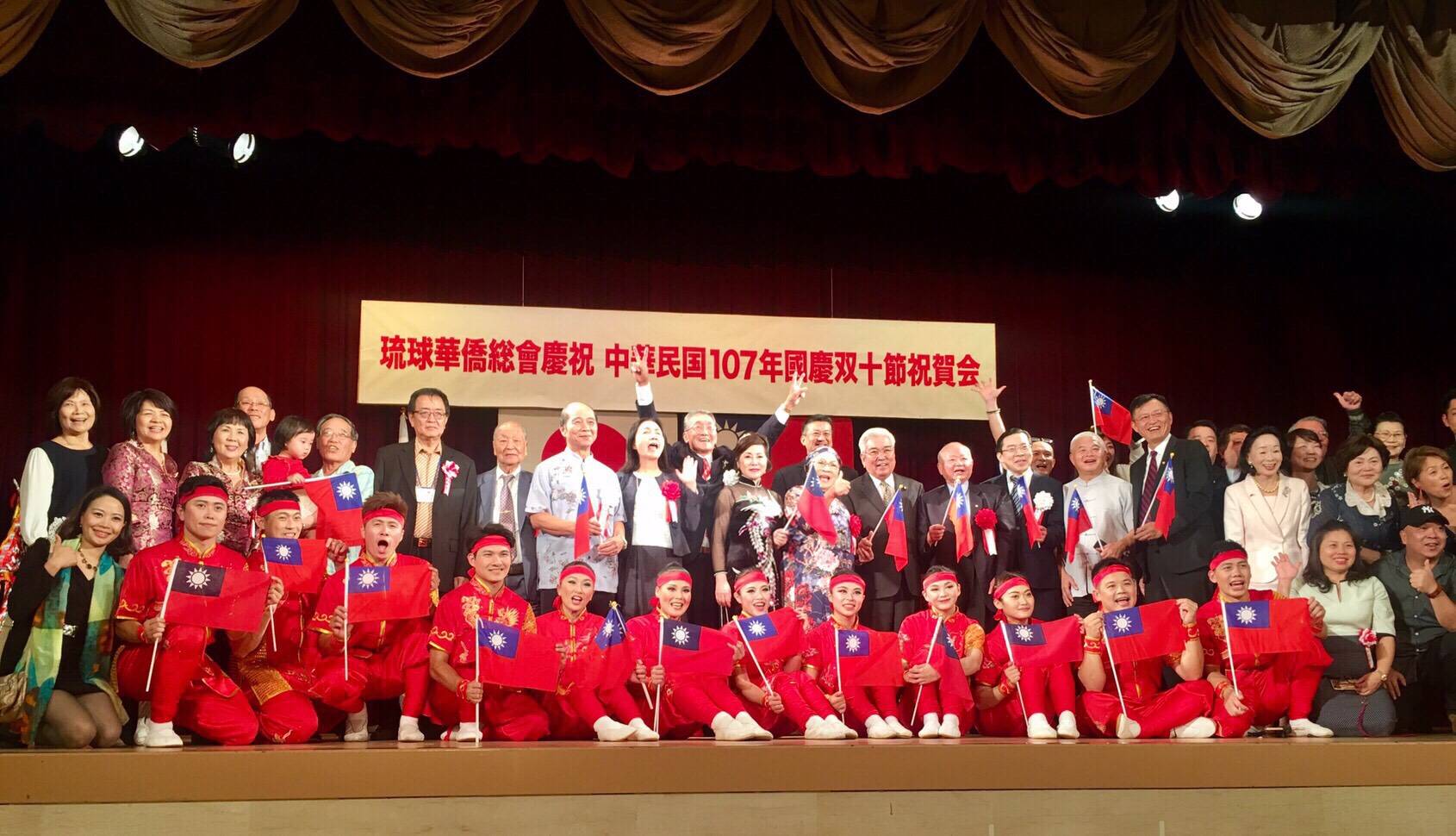 【沖繩/綜合報導】台北駐日經濟文化代表處那霸分處十月七日晚間於那霸市內太平洋飯店與琉球華僑總會聯合舉辦國慶祝賀晚會,當日會場內外懸掛台日兩國國旗,與會貴賓包括沖繩縣副知事富川盛武(代理縣知事出席)、縣議會議長新里米吉、眾議員西銘恒三郎、國場幸之助、下地幹郎、參議員儀間光男、大臣政務官島尻安伊子、日本中華聯合總會會長新垣旬子等政、經、僑、學、文化各界要人,總計達300餘人出席,場面熱烈盛大。