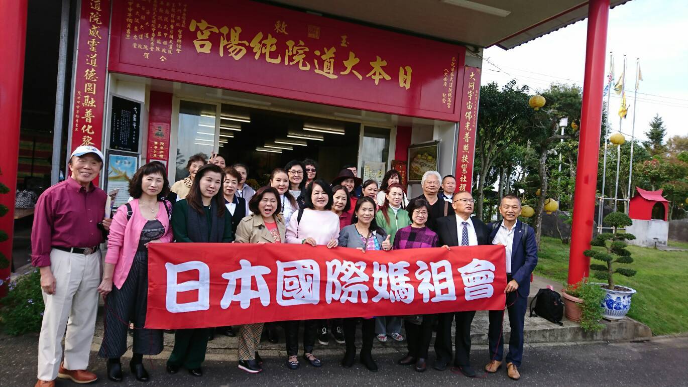 為紀念日本國際媽祖會四十七周年及舉行今年第二次理監事會,會長曾鳳蘭及顧問尹世玲策劃房總一日遊,會員及貴賓三十人在十一月十一日,先來到千葉純陽宮舉行理監事會及參拜,下午暢遊房總半島。台北駐日經濟文化代表處僑務組文君妃秘書也前來致意,她肯定媽祖會持續組團回國參加國慶,對政府僑務工作的支持。