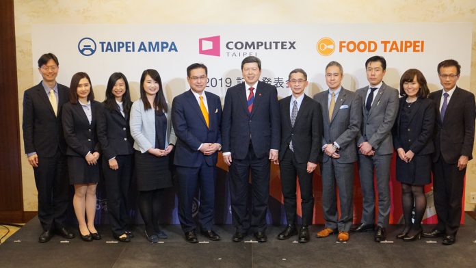 台湾貿易センター(葉明水CEO)はこのほど、台湾・台北市で4月下旬より6月まで開催予定の業種別主要イベントの告知のため来日し3月15日、都内パレスホテル東京で「COMPUTEX TAIPEI 2019」、「TAIPEI AMPA 2019」、「FOOD TAIPEI 2019」の開催概要や意図などについての記者会見を開いた。