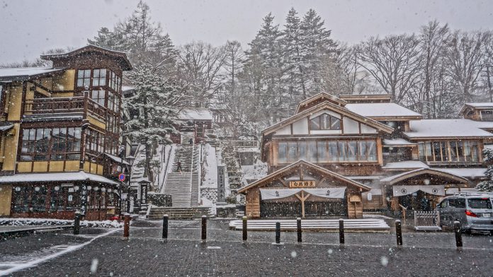 雪白一片讓草津溫泉更加浪漫