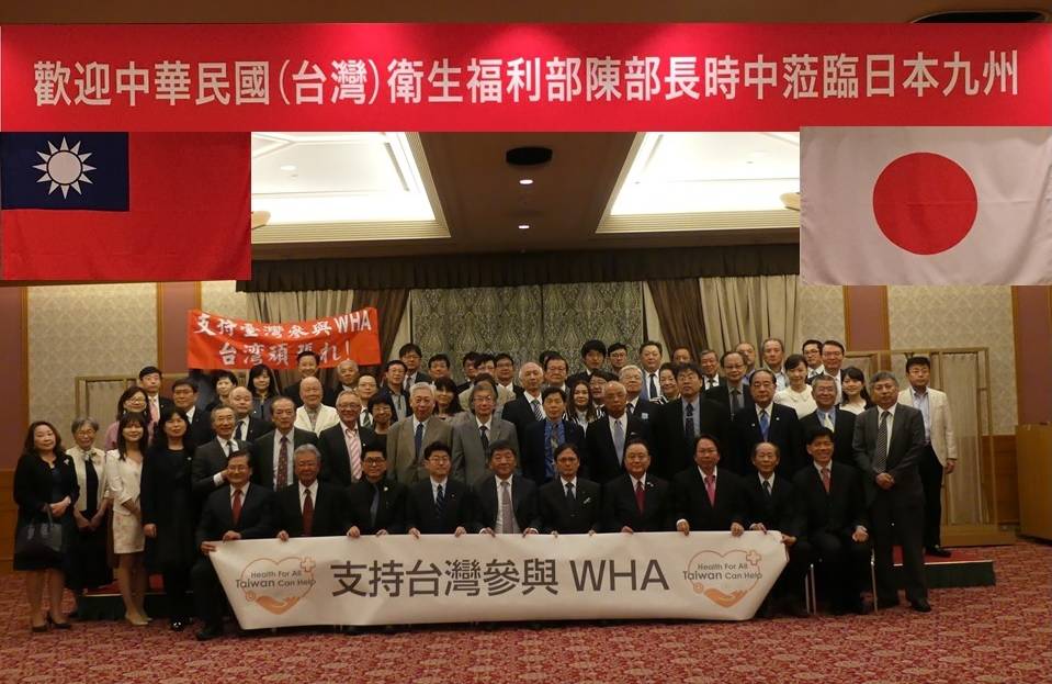 世界保健機関(WHO)の最高意思決定機関である世界保健総会(WHA)への台湾の参加を求める5,000人の署名簿が5月11日、九州の華僑団体が開催したパーティーの席上、北九州台湾同郷聯誼会の庄野寛栄会長から台湾の陳時中衛生福利部長(厚生労働大臣に相当)に手渡された。陳時中部長は「皆さんの支援は非常に心強い。これをもって来週からスイス・ジュネーブで開かれる世界保健機構総会に向かいたい。また世界の病気予防のために台湾と日本の交流を密にして頑張りたい」と述べた。