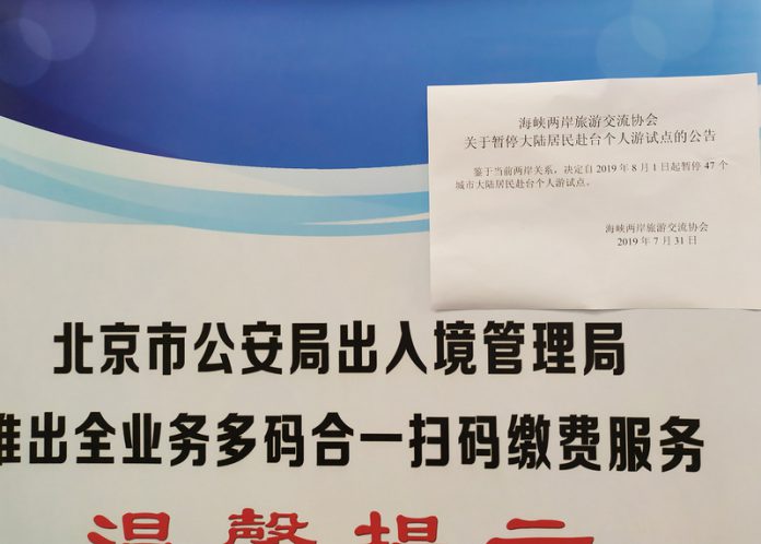 中国のが「8月1日より中国人の台湾への個人旅行の許可証の停止」と発表した(写真提供:中央社)