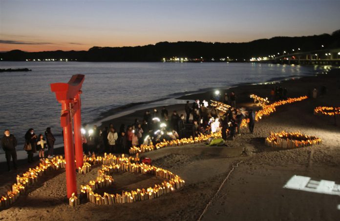 其中在安置千葉縣勝浦市的飯店外,昨晚聚集了約100多名當地居民,在沙灘上點燃約3000支的竹燈籠,並用投影機投射出「就快結束了,加油」、「讓我們再次在勝浦相會」等鼓勵的訊息。