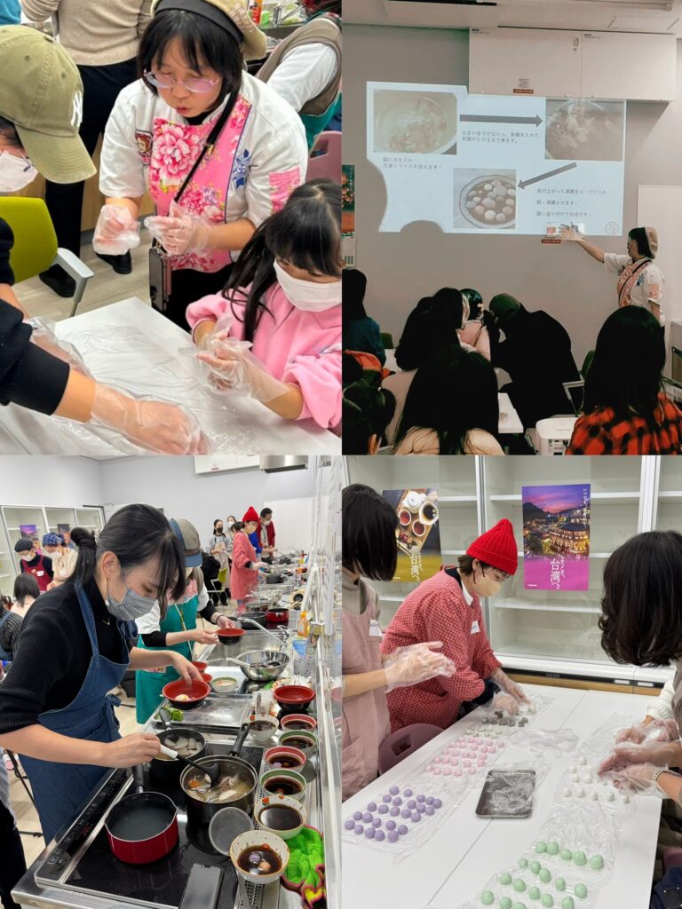 本次活動一大亮點是30多位參加者聯手製作100人份的台灣湯圓,並送至同步舉行的「2024港区つながる見本市」活動,與當地100多位民眾分享這道來自台灣的年節美味。「港区つながる見本市」旨在促進大阪市港區居民之間的合作與交流,強化社區認同感,成為凝聚居民情感的重要平台。首次品嚐台灣湯圓的日本民眾紛紛表示:「湯圓口感軟糯Q彈,搭配黑糖薑湯非常特別又美味,是一次新奇且溫暖的體驗。」