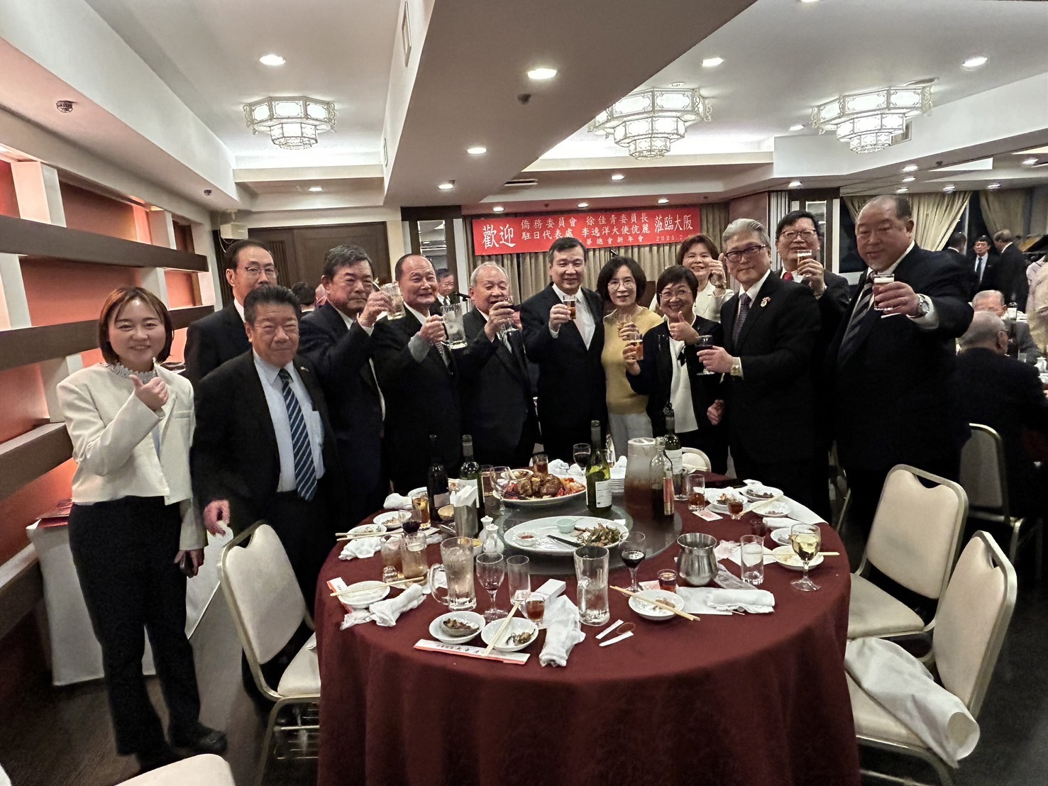 後續大阪府議會中谷恭典議長、大阪市會竹下議長、大阪府議會日華親善議員連盟杉江友介會長等人也上台致意,徐委員長與李大使也贈送致贈紀念品給郭會長及洪里勝信名譽會長。會中僑胞們也利用難得機會與委員長和大使交流和合影,最後則由日本中華聯合總會羅鴻健會長致閉幕詞,為餐會畫下圓滿句點。
