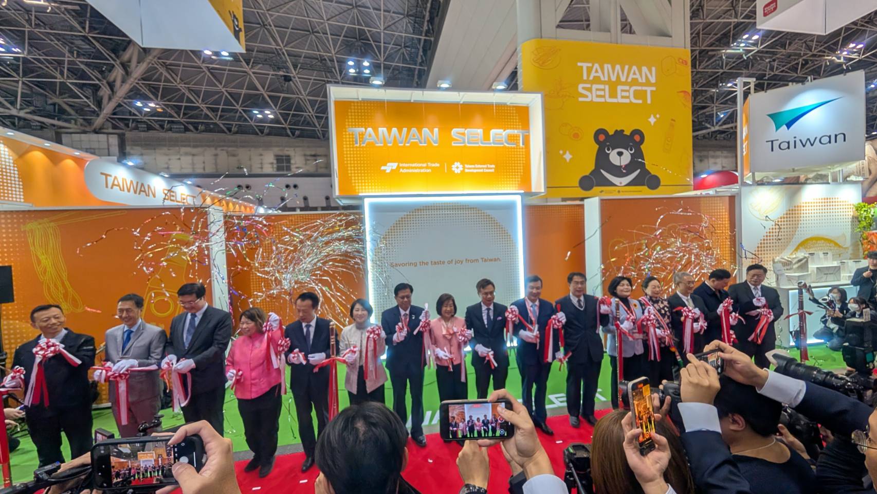 開幕典禮盛大舉行,外貿協會董事長黃志芳、駐日代表李逸洋、經濟部政務次長江文若等人,以及台南、屏東、嘉義等14縣市政府代表皆到場支持。黃志芳表示,台灣館精選最具市場潛力的產品,充分展現台灣食品的多樣性與創新能力,並期盼透過此次展會提升台灣食品在日本市場的能見度。