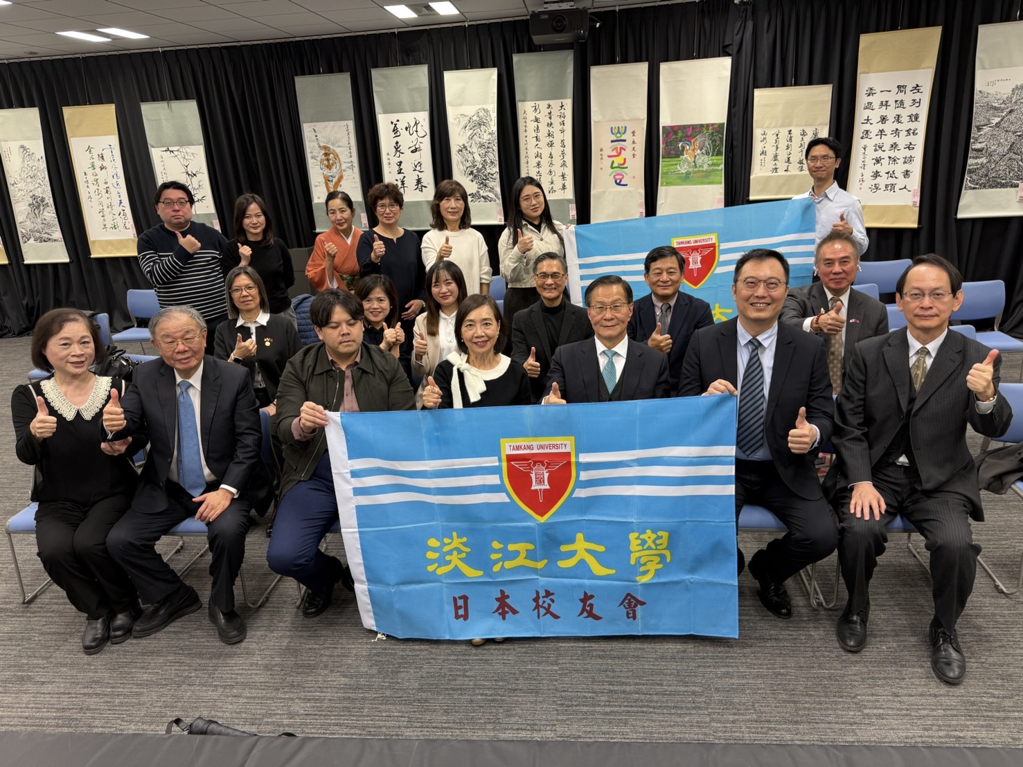 此次訪問團包括國際事務副校長陳小雀、工學院暨AI創智學院院長李宗翰、穩懋半導體董事長暨世界校友會聯合會總會長陳進財、日文系主任蔡佩青及校友服務暨資源發展處執行長彭春陽伉儷。淡江大學日本校友會亦派出約20名校友到場迎接,並聆聽國寶級書法大師張炳煌講解「智慧e筆書法」的發展。