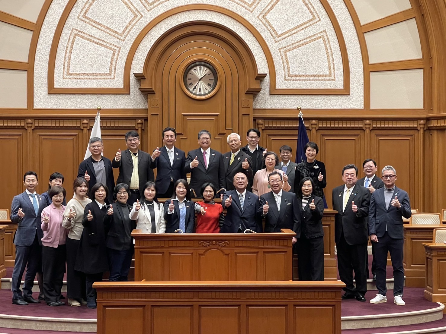 議長張鎮榮致詞表示,感謝大阪府市議員們的熱情款待。台灣與日本關係一向友好、密切,在經貿、文化、教育及觀光等領域,都保持緊密交流與合作,期望藉由此次考察,能與大阪及日本各界有進一步交流,汲取寶貴經驗、深化友誼。