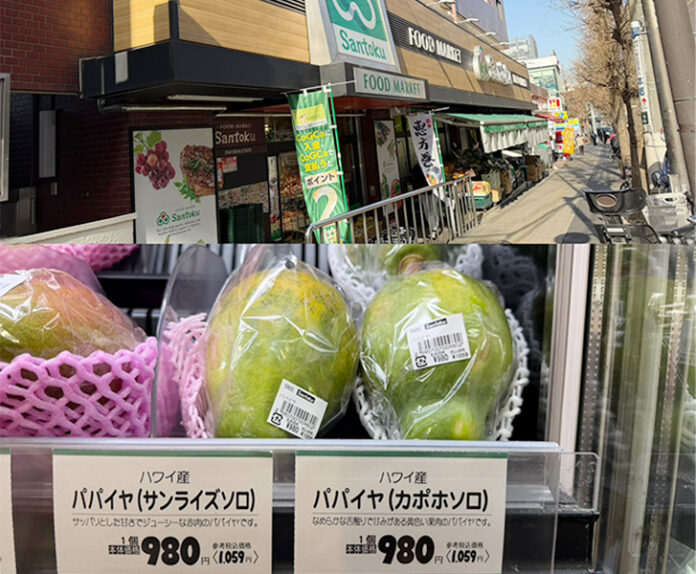 有一家以品質為路線的三德超市,一顆夏威夷產木瓜售價約 980 日圓。這類水果多為空運,外觀與熟成穩定,價格自然偏高。常客多是長期居住文京區的家庭,對他們而言,買的是安心與習慣。