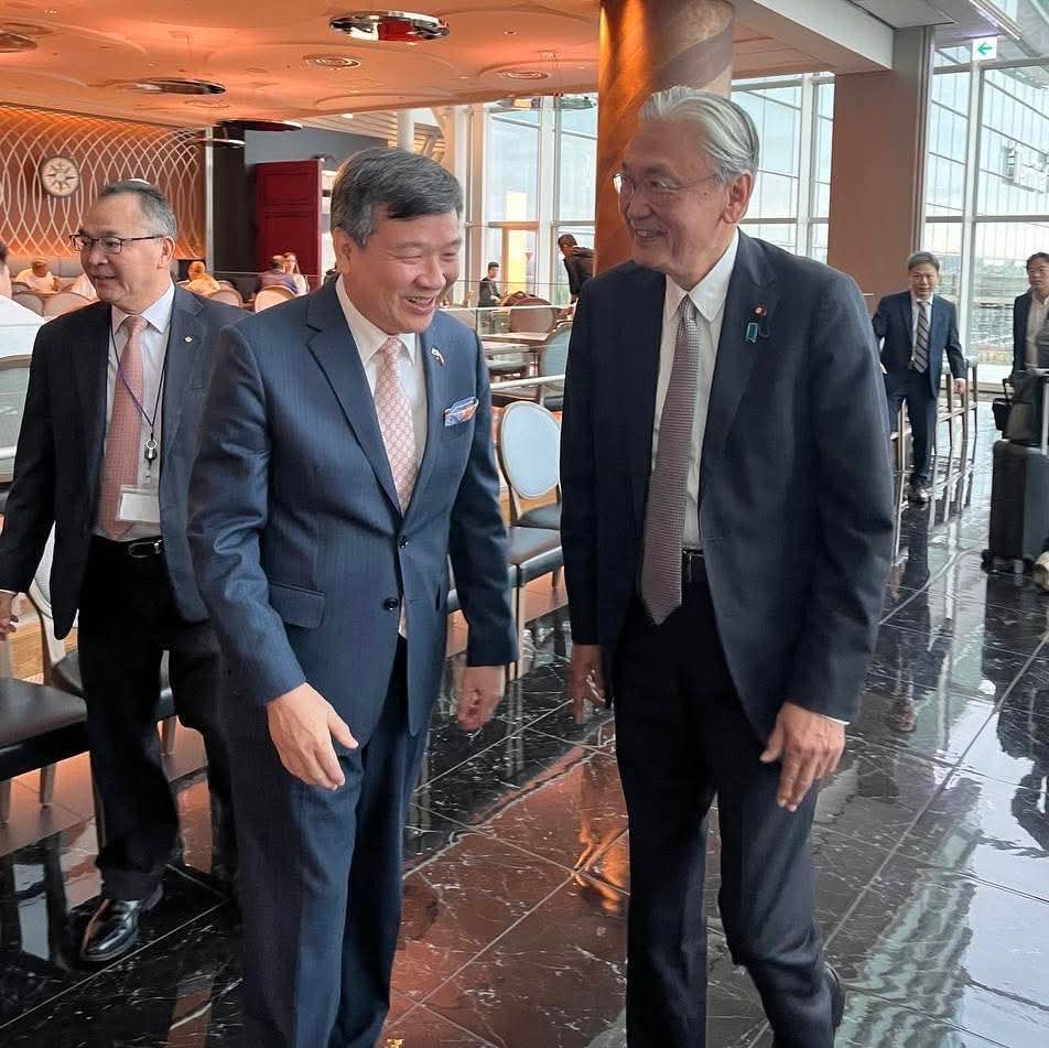 日本國會跨黨派友台團體「日華議員懇談會」會長、眾議員古屋圭司訪臺前在東京羽田機場(駐日代表處提供)