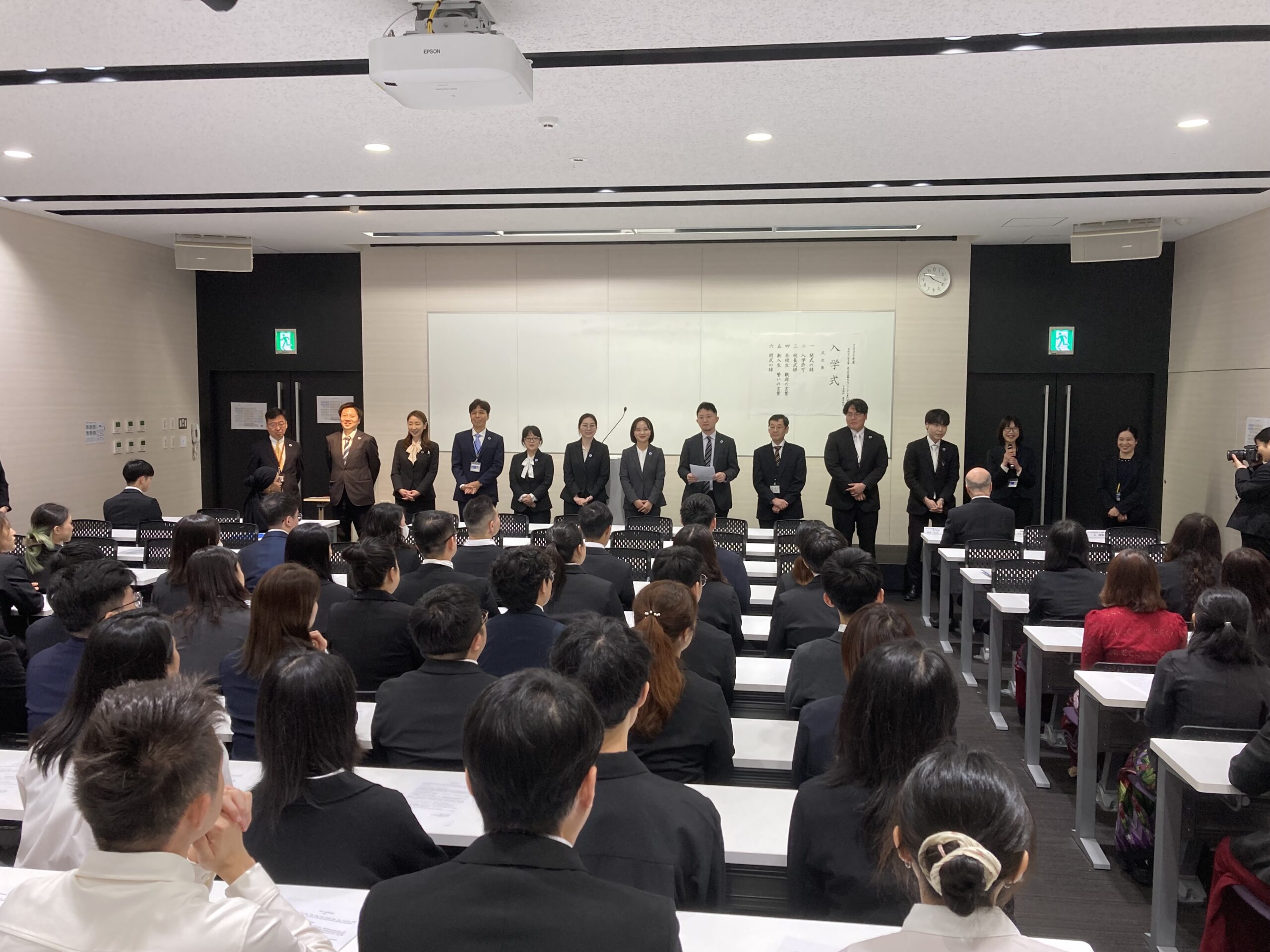 校長石川一仁致詞表示,本次有來自台灣、韓國、法國、越南、緬甸、馬來西亞、泰國、中國等國家79名新生入學。除了對各位表示歡迎之外,更對各位遠離自己的國家到海外學習的決心表達衷心的敬佩之意。石川校長表示,到海外留學絕對不是一件容易的事。不過自我意識非常重要,它決定一個人會成功或失敗,如果秉持著向前邁進的意識,相信自己的人生掌握在自己手上,對自己負責,勿忘留學的初衷,今後即使遭遇到挫折困難,也不放棄目標向前邁進,最後就會成功。歷史上許多著名的人物,都是抱著向前邁進的意識而成功的,勉勵各位同學在學校全體教職員的指導與協助下,努力向前並度過一個充實又有意義的留學生活。