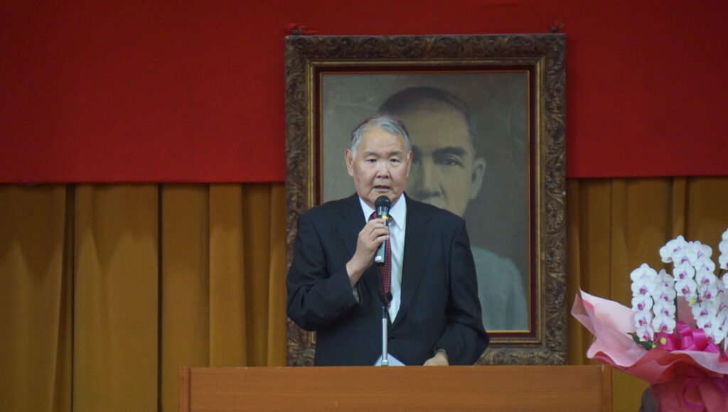 周學佑副代表先勉勵學生要掌握時間,一個今天勝過兩個昨天,不要浪費時間,第二則是一定要設立目標並勇敢執行,努力不一定會成功,但放棄肯定就沒有機會了,第三則是選擇善良的道路,尤其是在一念之間,當你在一念之間可以成惡也能成善。周副代表也說,東京中華學校是歷史悠久且具優良傳統的學校,同時感謝王東生校長將他的青春奉獻在東京中華學校,相信事大家有目共睹的,也感謝所有教職人員對學生的盡心照顧,很高興看到學生即將鵬程萬里。