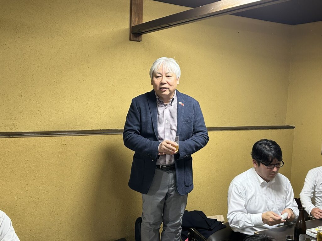 京都日台親善協會加藤就一副會長在領導乾杯時表示,其所屬的嵐山商店街長期以來深受台灣觀光客喜愛,期望嵐山未來能成為日台交流的重要據點。